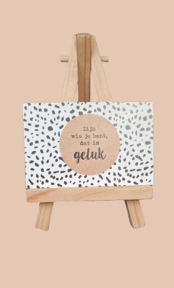 Combineer met onze leuke kleine schildersezeltjes waar je de kaartjes op kunt zetten. Kies voor alleen het doosje met kaartjes of het doosje met kaartjes inclusief schildersezeltje.