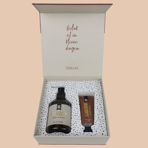 Deze luxe cadeaubox heeft een luxe verpakking. Dat ziet er al direct prachtig uit.