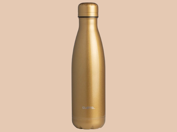 Een isoleerfles in GOUD en een drinkfles in ZWART
